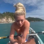 Blonde in pink bikini kayak blowjob